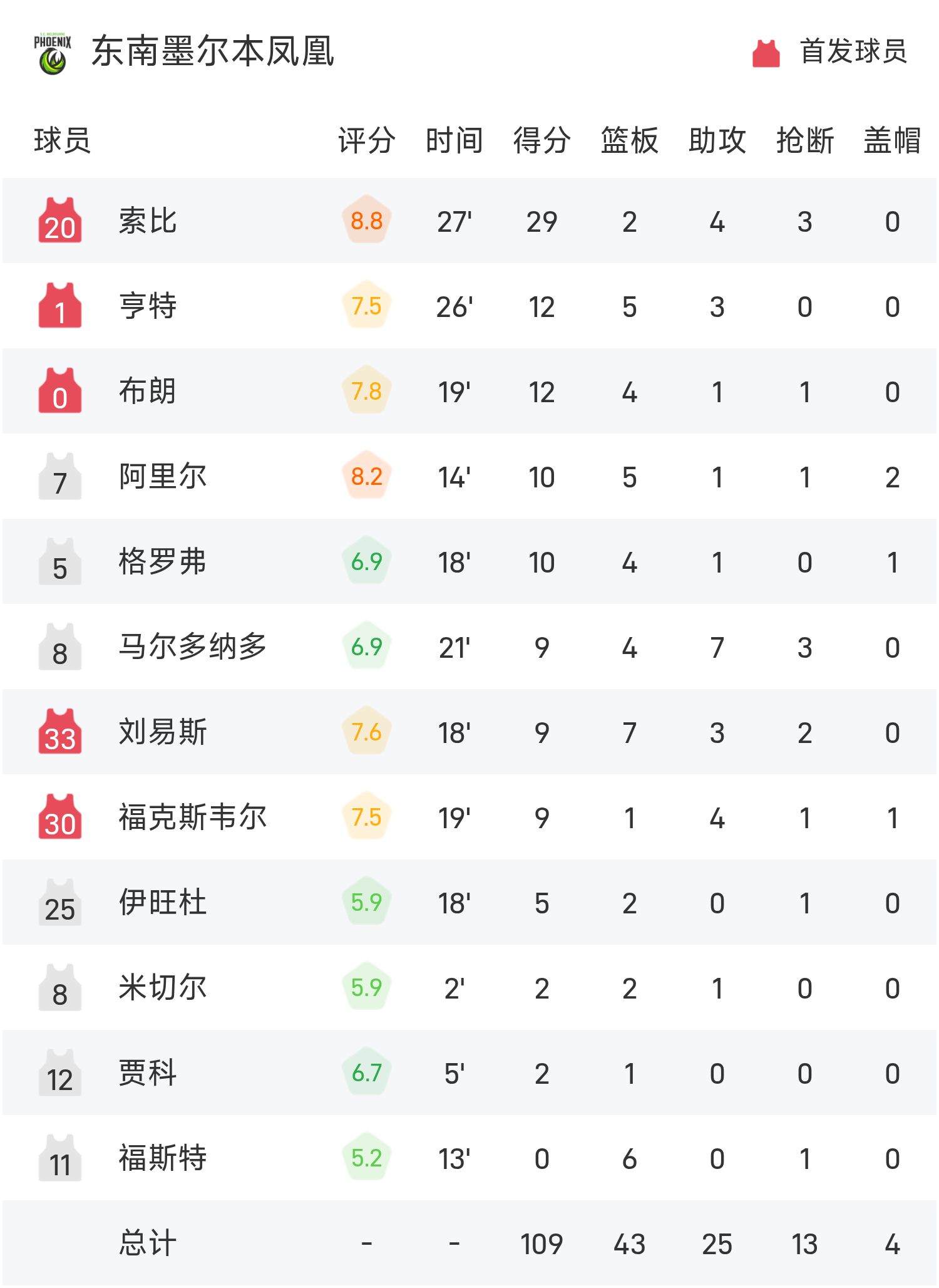 รายงานการต่อสู้ของ NBL: โซบีทำ 29 แต้ม เมลเบิร์น ฟีนิกซ์ ตะวันออกเฉียงใต้ เอาชนะ บริสเบน บุลเล็ตส์ 109-86