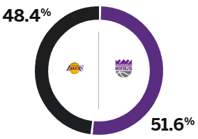 ในหมู่พวกเขา อัตราการชนะของ Lakers คือ 48.4% และอัตราการชนะของ Kings คือ 51.6%