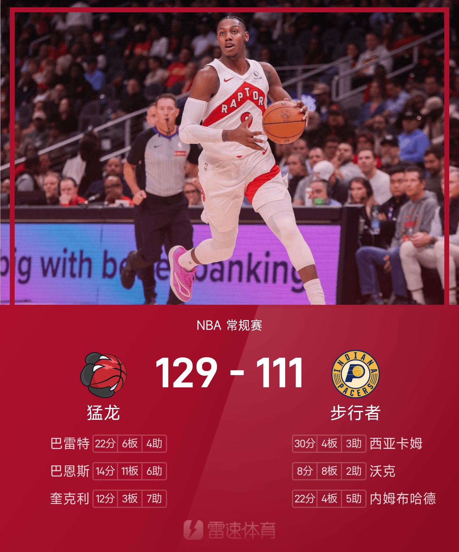 ในตอนท้ายของเกม Pacers แพ้ Raptors 111-129