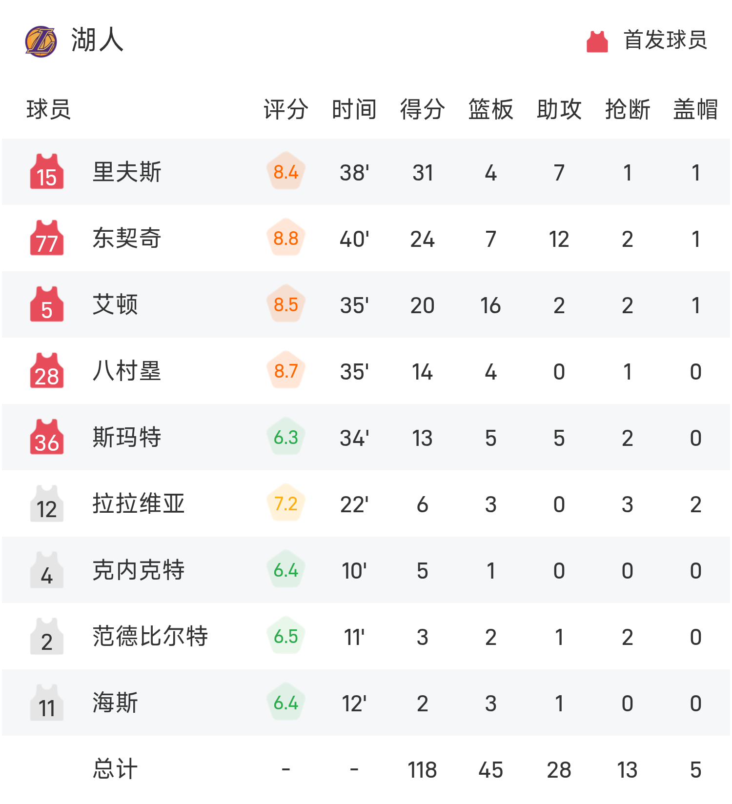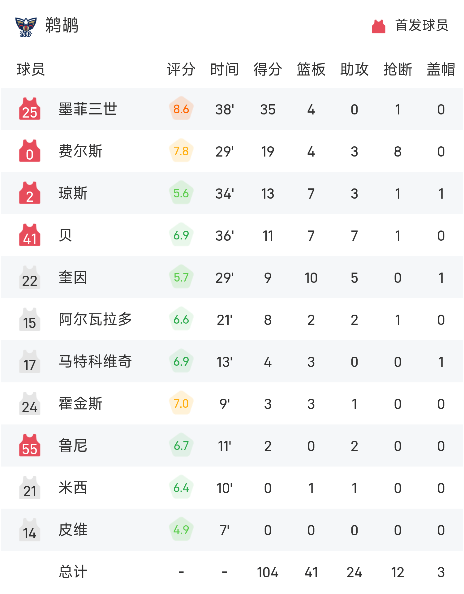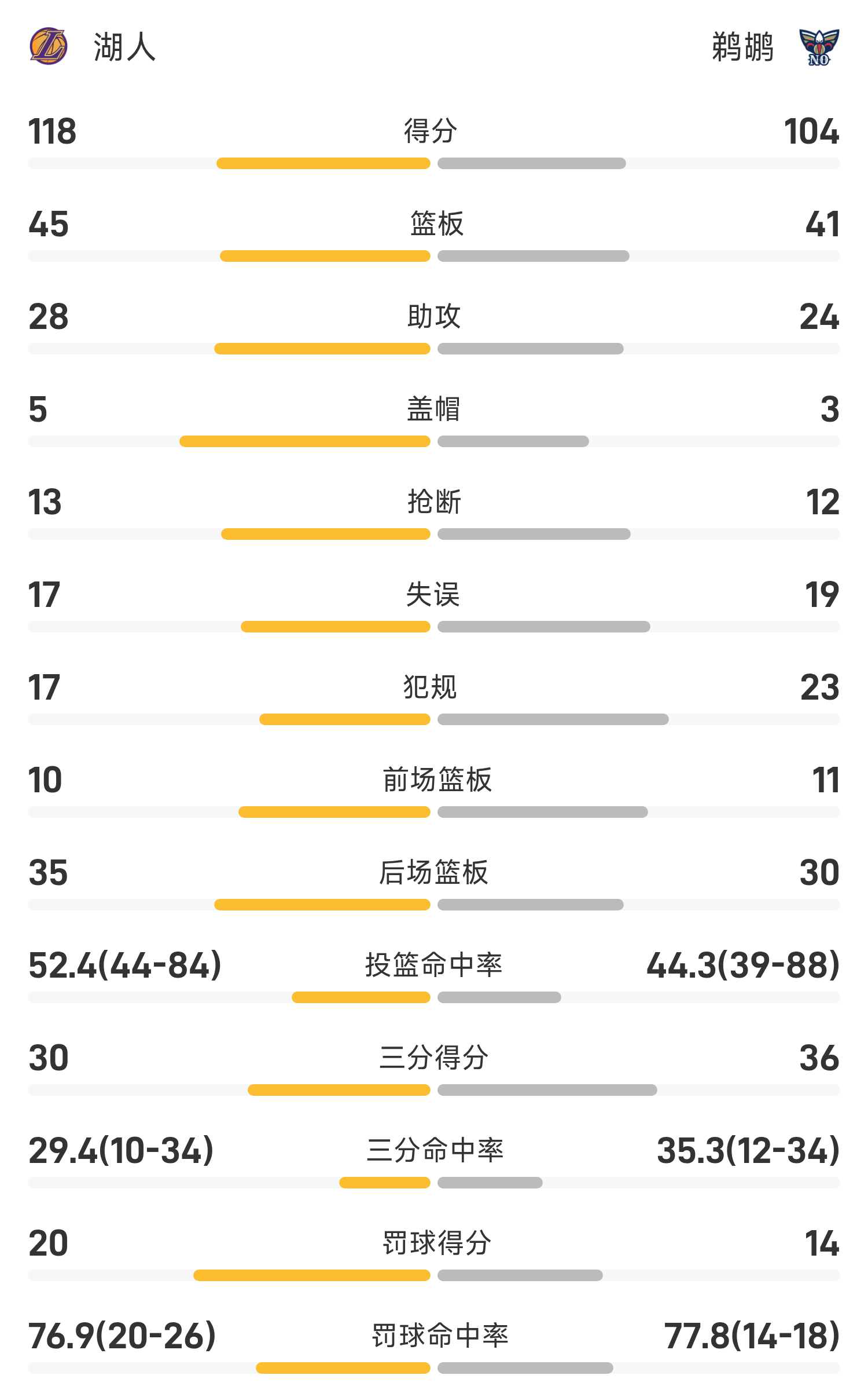 ในตอนท้ายของเกม Pelicans แพ้ Lakers 104-118
