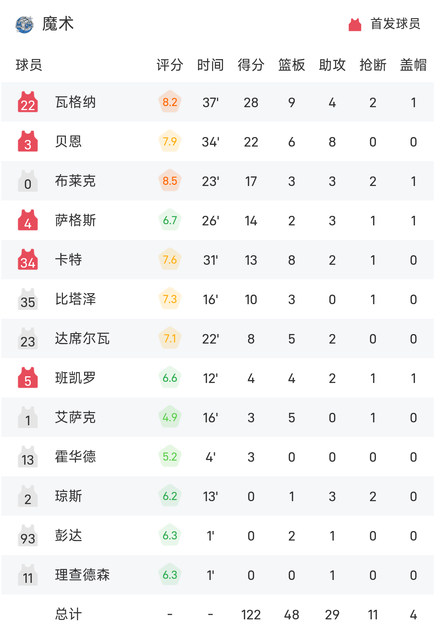 วากเนอร์ทำคะแนนได้ 28 แต้ม 9 รีบาวด์ 4 แอสซิสต์เพื่อพาทีมคว้าชัยชนะ ในขณะที่บรันสันทำคะแนนสูงสุดในเกม 31 แต้ม 3 รีบาวด์และ 6 แอสซิสต์