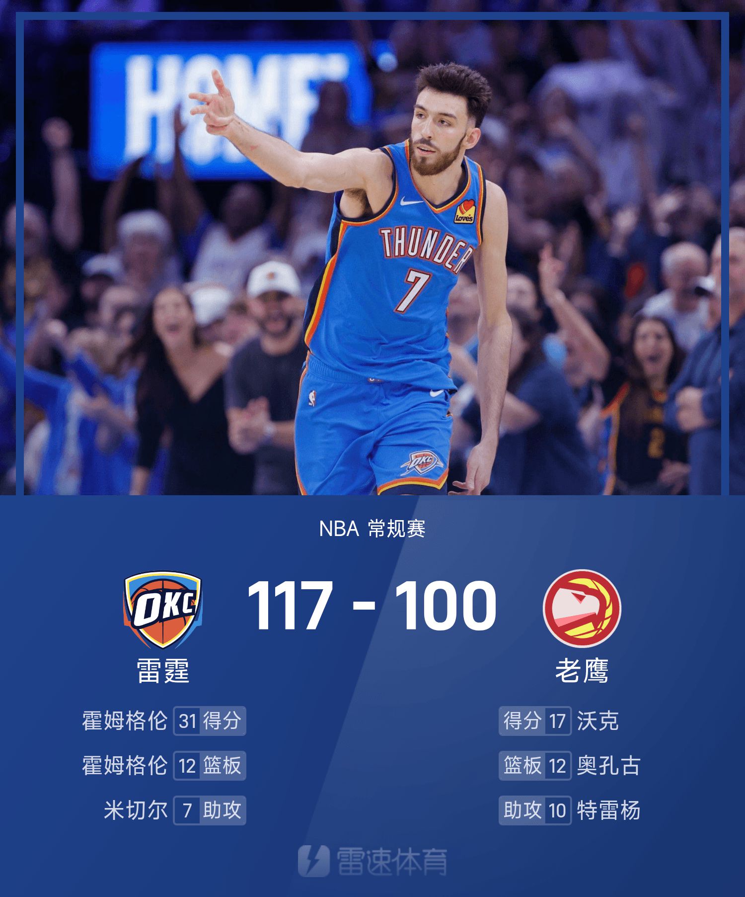 The Thunder เอาชนะ Hawks 117-100