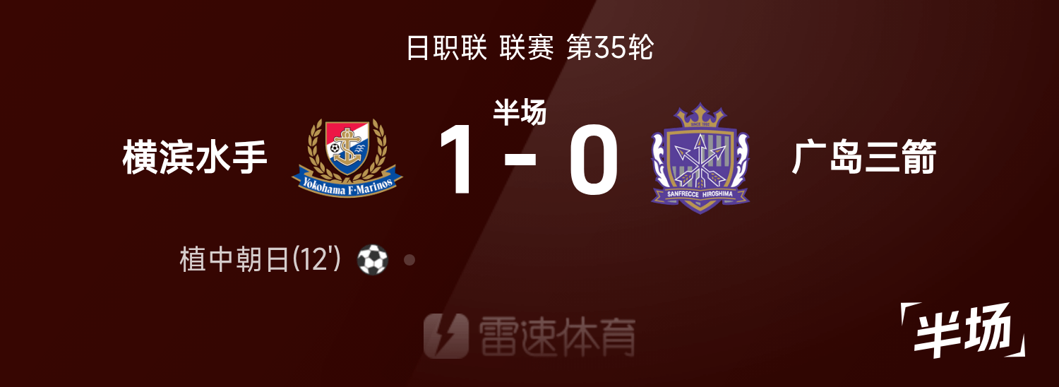 พักครึ่งลีกอาชีพญี่ปุ่น: จงจงและอาซาฮีทำผลงาน, โยโกฮาม่า มารินอส ชั่วคราว 1-0 ฮิโรชิม่า ซานเฟรซเซ