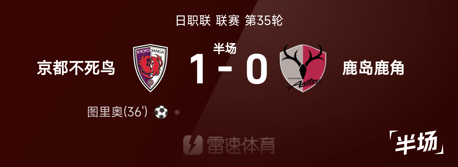 พักครึ่งลีกอาชีพญี่ปุ่น: ทูลิโอทำประตู, เกียวโต ฟีนิกซ์ 1-0 คาชิมะ แอนท์เลอร์ส ชั่วคราว