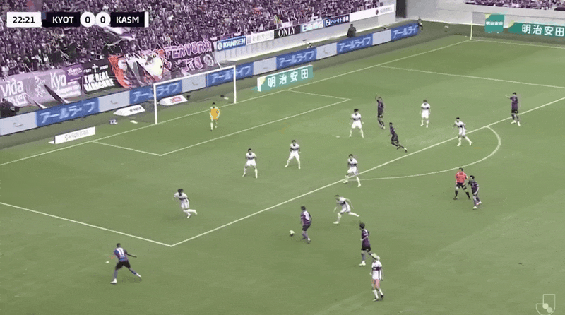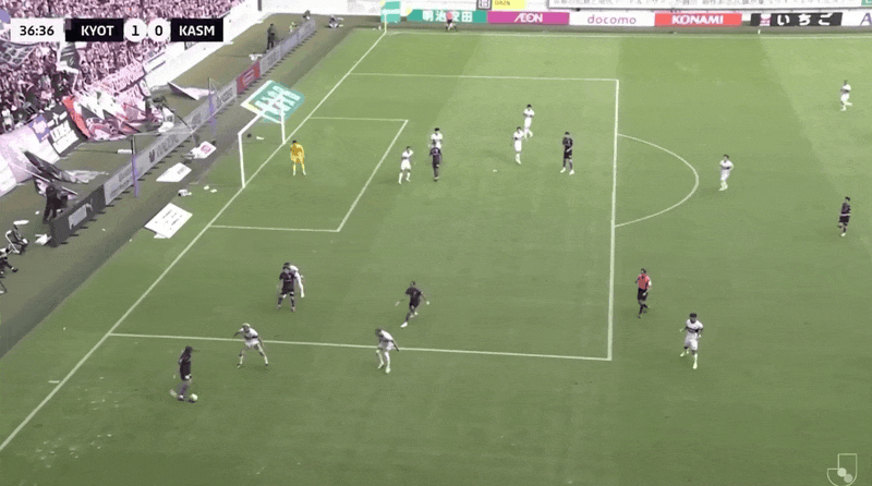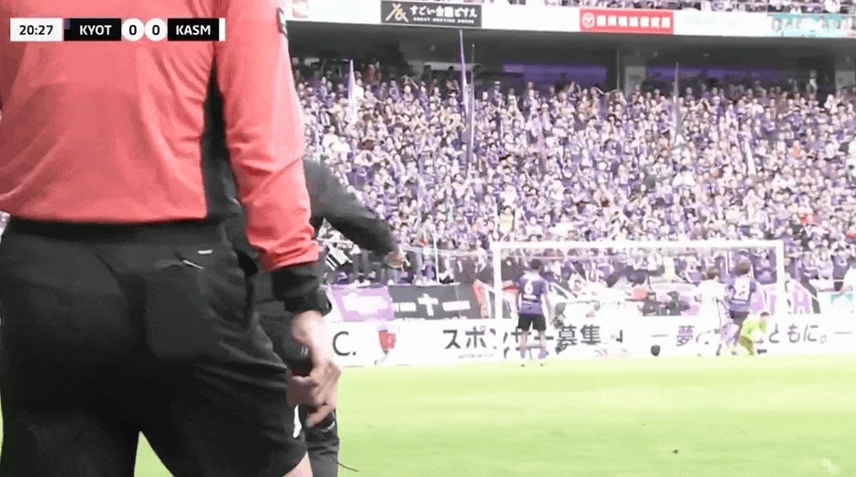 9’ กลิ่นดินปืนเริ่มแรงขึ้น! โอกาสโจมตีจากลูกตั้งเตะของคาชิมะ ผู้เล่นจากทั้งสองฝ่ายผลักกันจนสุดโค้ง