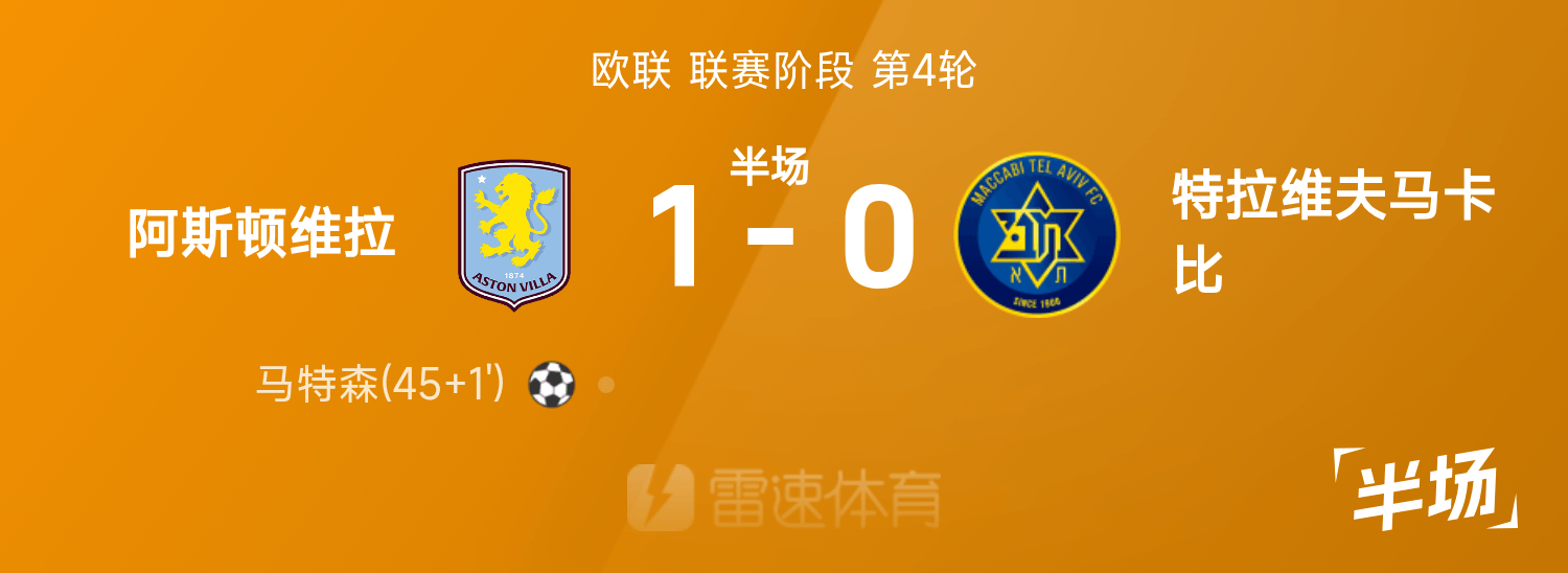 พักครึ่งยูโรปาลีก : แมตต์สันทำประตู, มาร์ตินเซฟได้อย่างน่าทึ่ง, วิลล่า 1-0 มัคคาบีเทลอาวีฟ