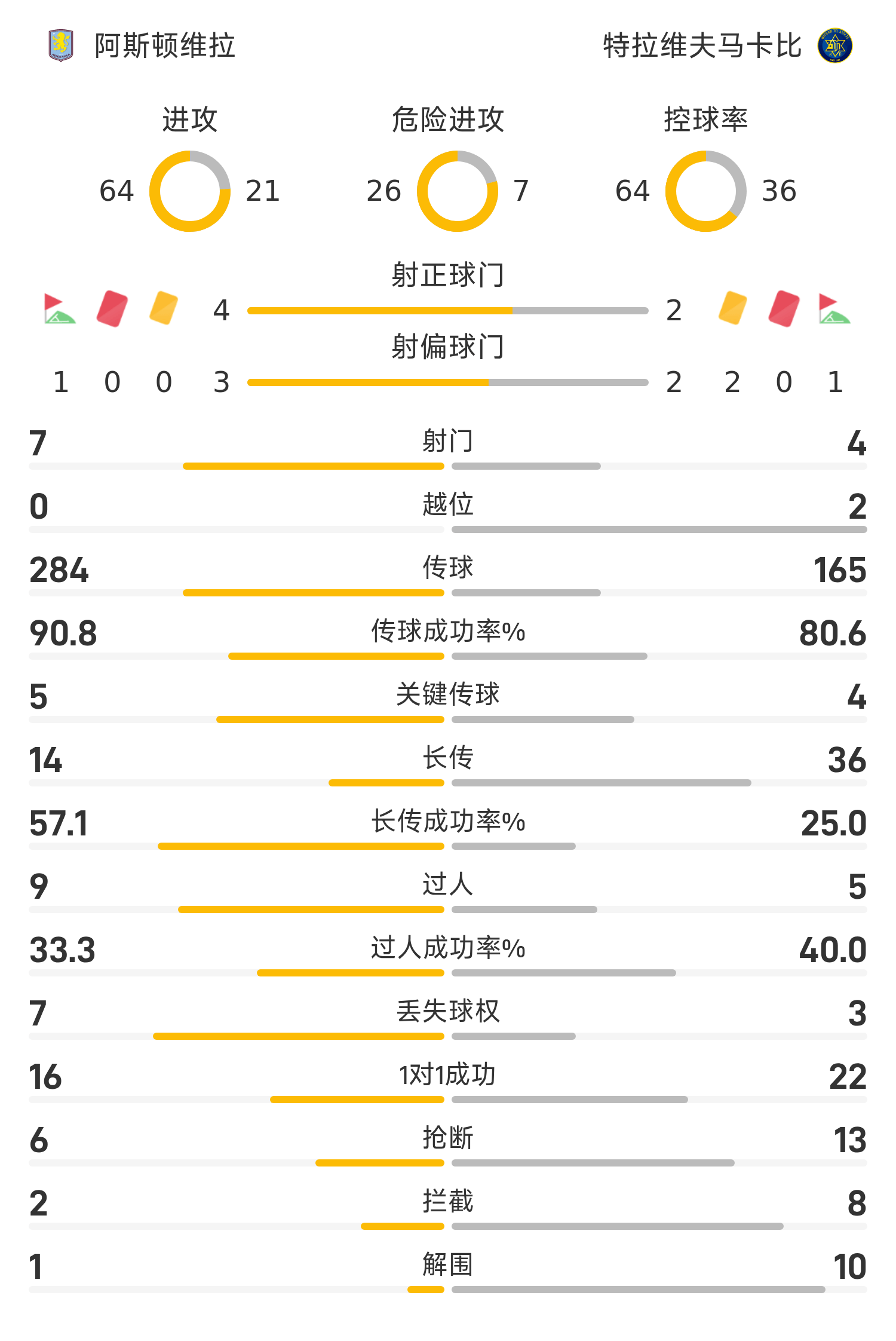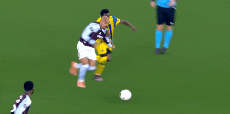 2'โอนาน่าสกัดบอลแล้วจ่ายบอลไป ชโลโมล้มลงกับพื้นและเข้าสกัดโรเจอร์สเพื่อเอาชนะโรเจอร์สด้วยตัวคนเดียว
