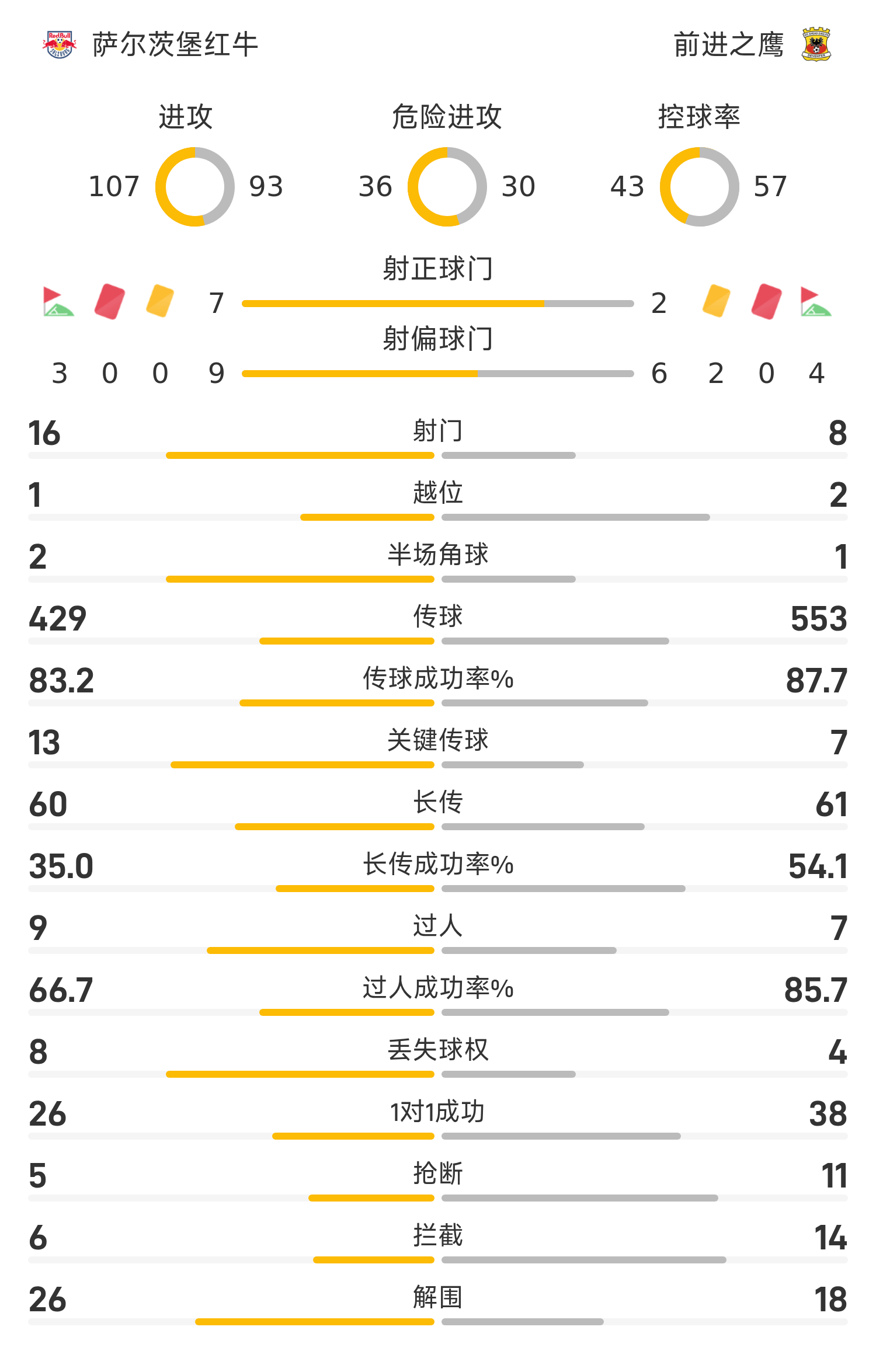 51’ ซัลซ์บวร์กกดไปข้างหน้าเพื่อรับบอลและโต้กลับอย่างรวดเร็ว วิทสันผลักมุมไกลและโดนตาข่ายด้านข้าง
