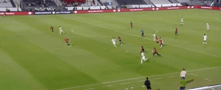 10' ดิอัลโลโหม่งเข้าประตู และผู้รักษาประตูพยายามดิ้นรนเพื่อรักษาบอลจากลูกโหม่ง เส้นหลัง