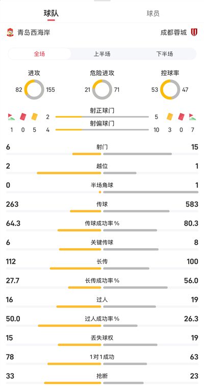 ชิงเต่าเวสต์โคสต์ vs เฉิงตู เฉิงตู เฉิงตูสถิติเต็มเวลา: