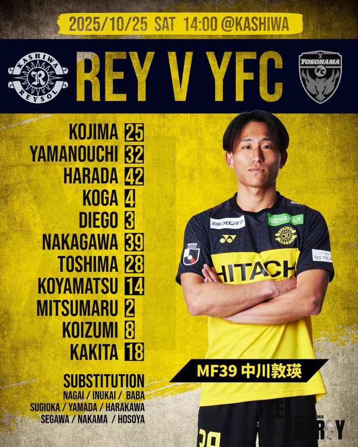 คาชิวะ เรย์โซล vs โยโกฮาม่า เอฟซี รายชื่อตัวจริง : โทโมยะ โคมัตสึ ออกสตาร์ต, โซโลมอนอยู่ในรายชื่อ