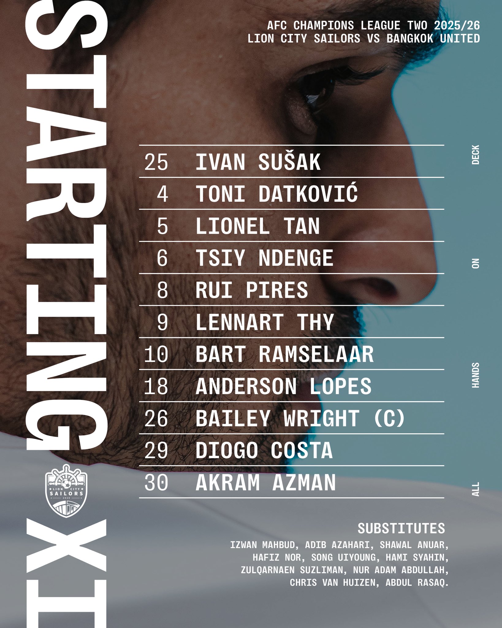 เวลา 18:00 น. ของวันที่ 6 พฤศจิกายน ตามเวลาปักกิ่ง ในรอบที่สี่ของ AFC Champions League รอบแบ่งกลุ่มที่สอง ทีมเหย้าของ Lion City Mariners จะเผชิญหน้ากับบางกอกยูไนเต็ด รายชื่อผู้เล่นตัวจริงได้รับการประกาศก่อนเกม