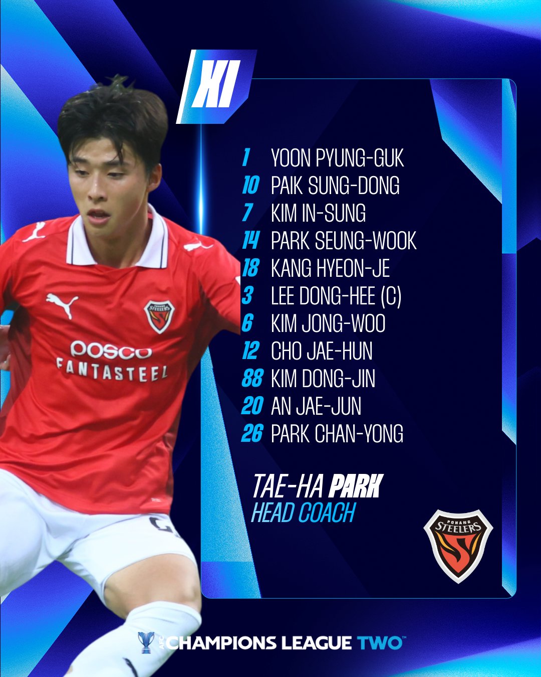 เวลา 18:00 น. ของวันที่ 6 พฤศจิกายน ตามเวลาปักกิ่ง ในรอบที่สี่ของ AFC Champions League รอบแบ่งกลุ่มที่สอง ทีมเจ้าบ้าน Pohang Ironman เผชิญหน้ากับ Tampines Wanderers และมีการประกาศรายชื่อผู้เล่นตัวจริงก่อนเกม
