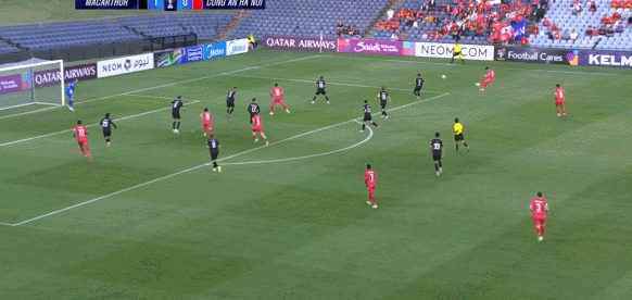 18' ฮานอยจ่ายบอลจากซ้ายไปยังเขตโทษ ทำให้เกิดความวุ่นวายในโซนสามวินาที