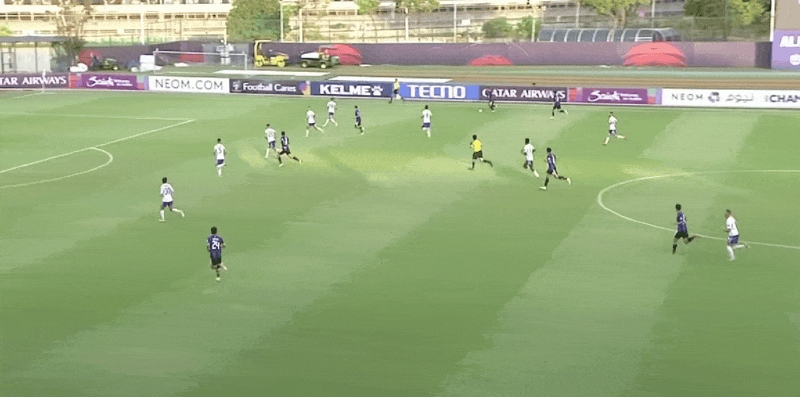 7’ บททดสอบเล็กๆ น้อยๆ! ตี้ยี่หันกลับมาและเลี้ยงบอลในโซนสามวินาทีแล้ววอลเลย์ แต่บอลถูกกองหลังสกัดไว้