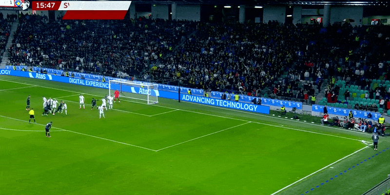 62’ แนวรับของสโลวีเนียเปิดกว้าง และ Oblak ก็เซฟอย่างกล้าหาญจาก Muslija