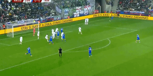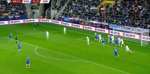 55’ สโลวาเกียยิงบอลหน้าประตู แต่ถือว่าประตูไม่ถูกต้อง