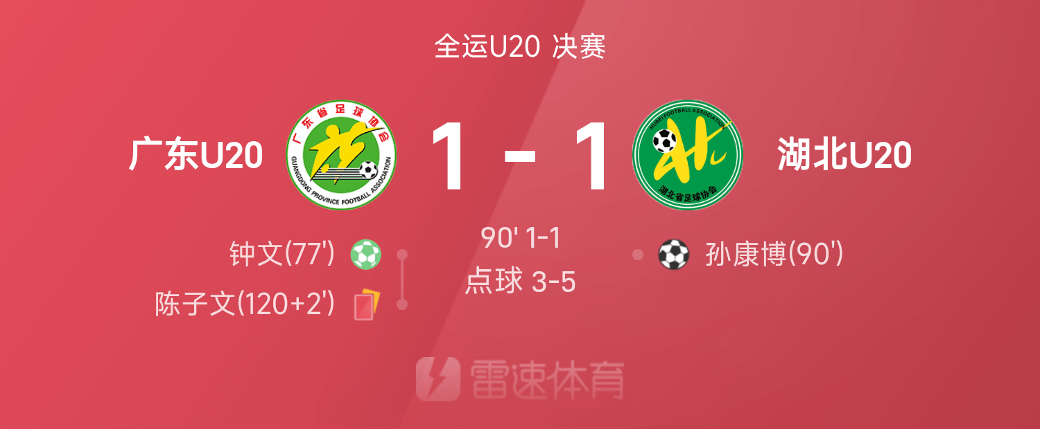 กวางตุ้ง U20 รายชื่อตัวจริง: 22-หยวน เจี้ยนรุ่ย, 4-หลี่ หมิงเจี๋ย (90'1 9-หลี่ ซิงเซียน), 55-ฮวง เค่อฉี, 3-หยวน ซีหนาน, 5-ไห่ เจียฉิง (90'20-หลี่ เล่อหัง), 6-หลวน เฉิง (111 ฟุต 8-เฉิน เหว่ย), 59-เหม่ย ซวยจุน (90 ฟุต 1) 5-เฉิน ซีเหวิน), 16-จาง จี้ซง, 7-จง เหวิน, 57-หวัง ซีหยาง (87'33-เจียง เหวินจิง), 47-หวง ซีซุ่น (80'60-อันปัง)