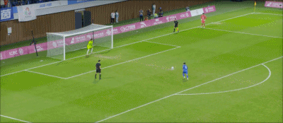 19' จงเหวิน หันกลับมาและเลี้ยงบอลในโซนสามวินาทีแล้ววอลเลย์ และบอลพลาดเป้า