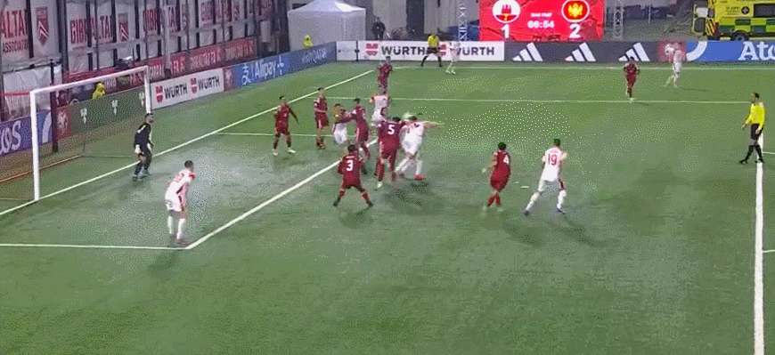 67' คอสโตวิช เจอบอลหน้าประตู หันกลับมา เลี้ยงบอล และวอลเลย์ ลูกบอลข้ามคานแล้วบินออกจากเส้นหลัง