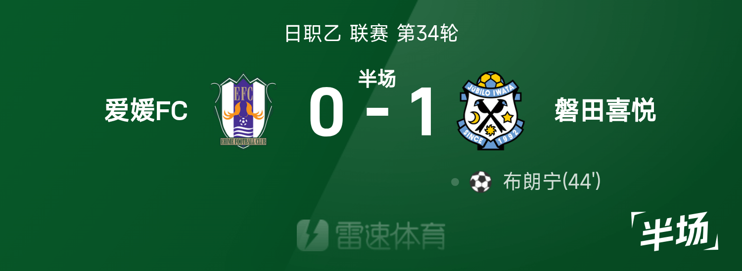 ญี่ปุ่นลีกบี พักครึ่ง : บราวนิ่งสกอร์, เอฮิเมะ 0-1 อิวาตะ จอย