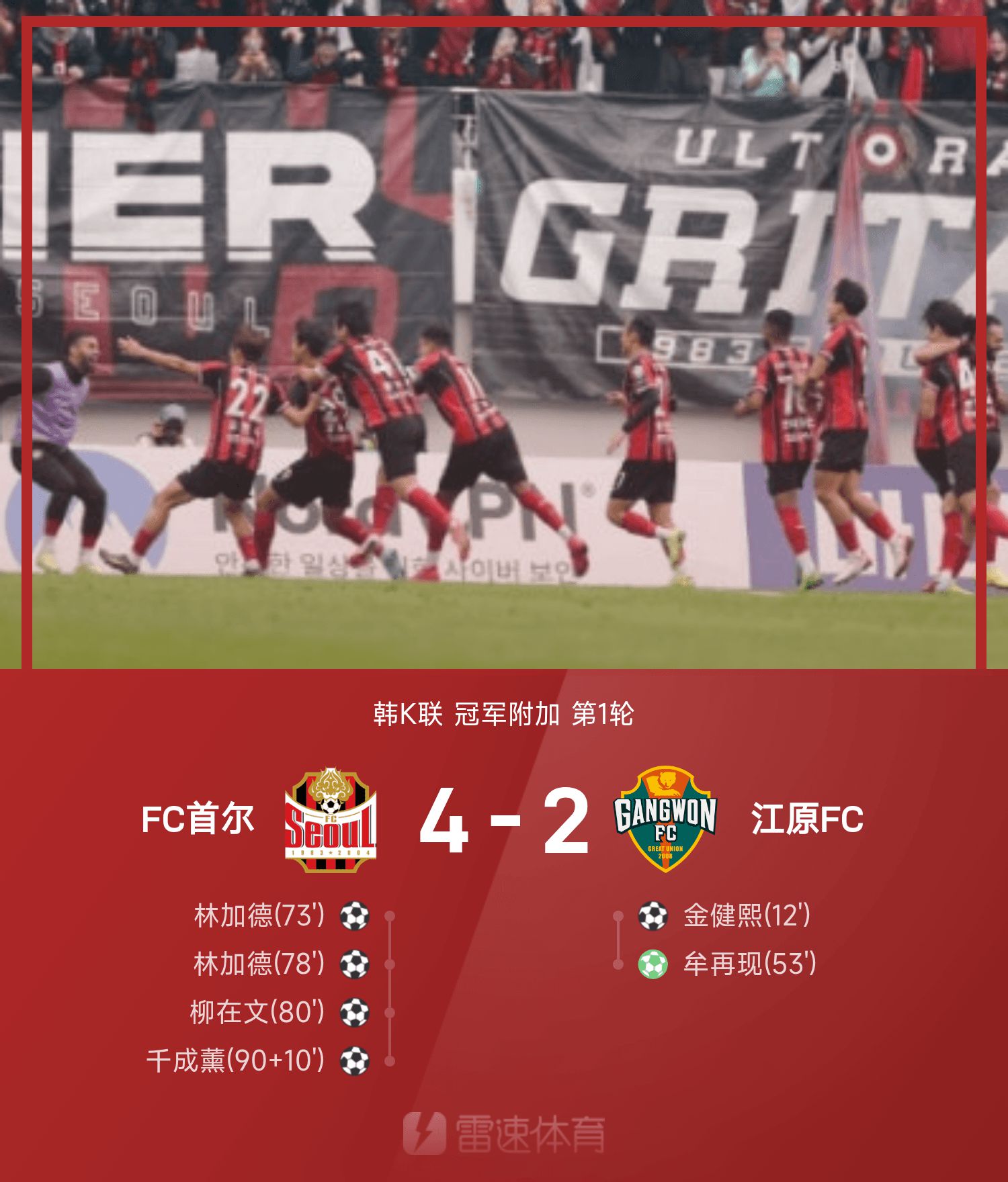 รายงานการแข่งขันเคลีกเกาหลี ลินการ์ดตีสอง ริวแจมุนพลิกเกม โซลพลิกกลับกังวอน 4-2