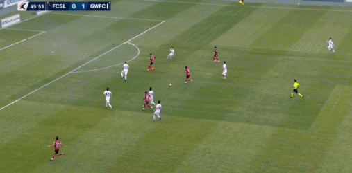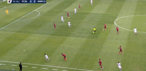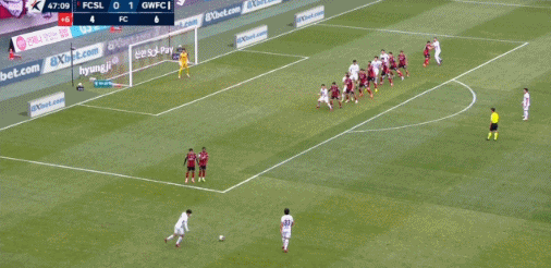 5’ ฟรีคิกของโซลเข้าสู่พื้นที่สามวินาที และหลี่ เซิงโมก็สายเกินไปที่จะแซงหน้าประตู