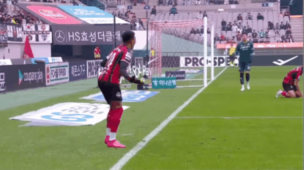 39' คิม จินซู ยิงประตู จากนอกโซนสามวินาทีและผู้รักษาประตูพยายามแย่งบอลจากเส้นหลัง