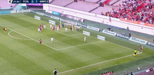 22' หลี่ เชงโม่ขนาบข้างประตูแล้วตีเข้าประตูด้วยหัวของเขา และลูกบอลก็เบี่ยงเบนไปโดยตรง